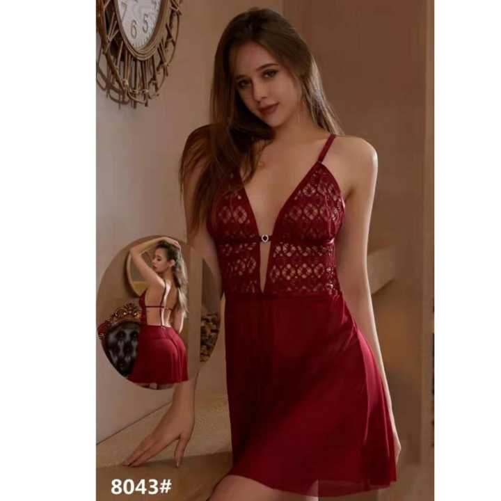 Sleepwear Babydoll Lingerie Set For Women With G String Panty Free Size Marin Red Morun Colour is a popular picture for sexy and hot.