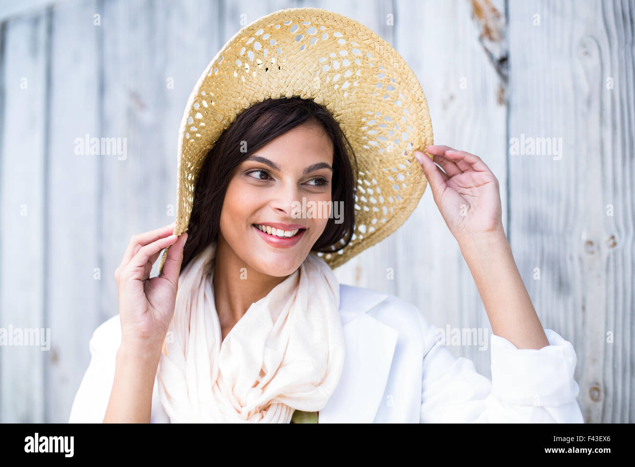 Tag : Smiling Beautiful Brunette Wearing Straw Hat Stock Photo Alamy