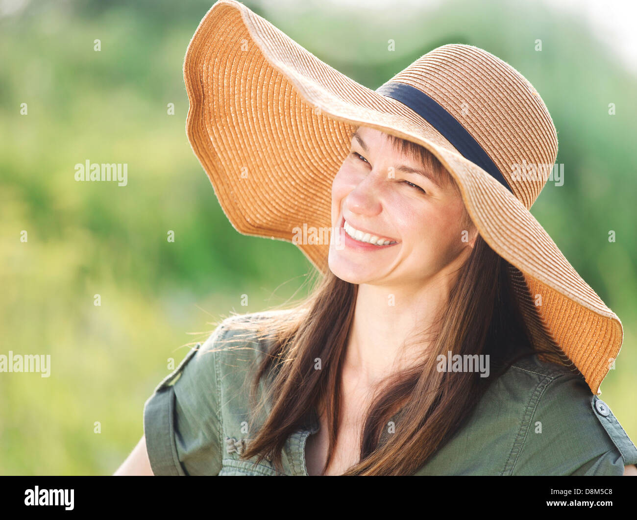 Tag : Smiling Brunette Woman In Hat Stock Photo Alamy