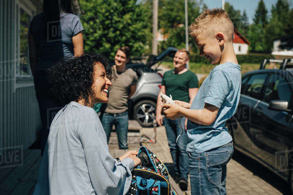 Smiling Mother Talking To Son While Gay Couple Standing By Patio During Sunny Day Royalty Free pictures has 500 x 400 · 50 kB · jpeg.