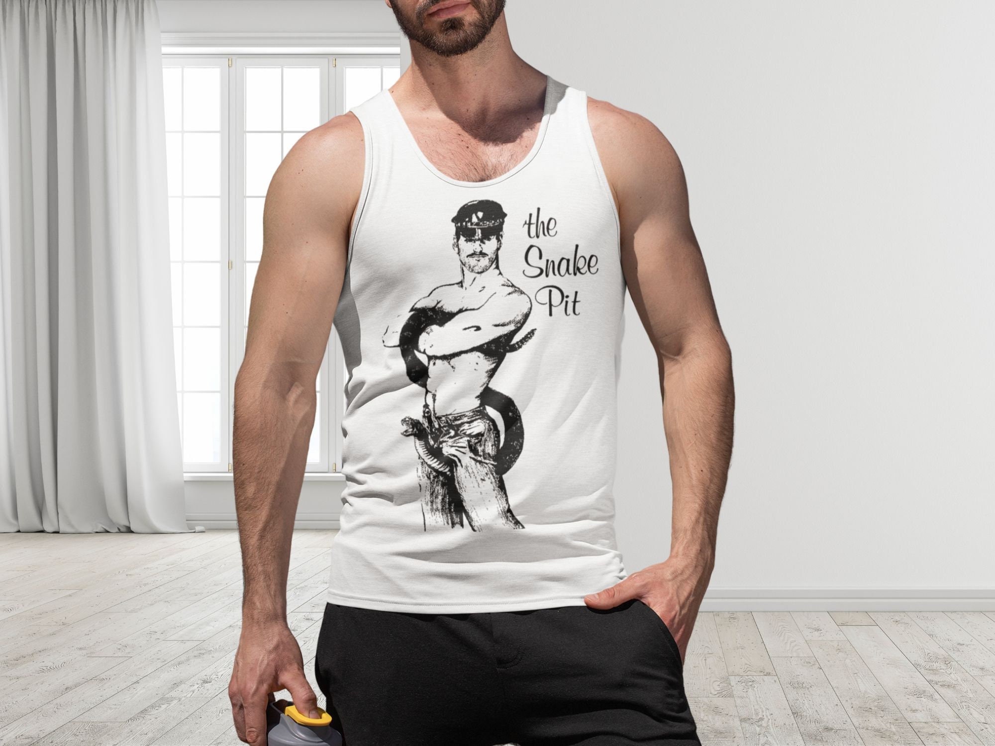 Tag : Snake Pit Gay Bar Tank Top Vintage Leather Club Shirt Retro Queer Tee Vintage Illustration