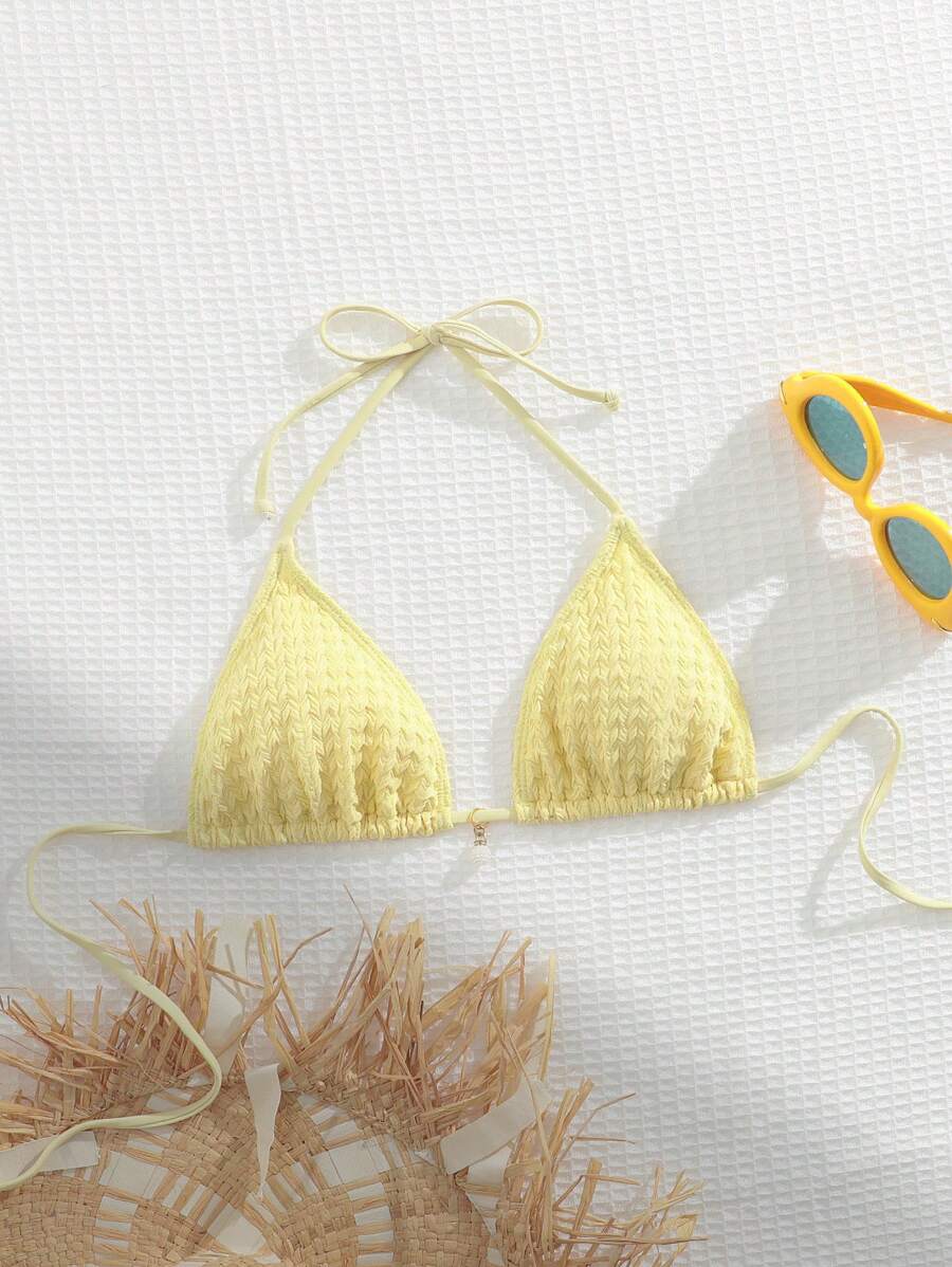 Solid Color Sexy Triangle Halter Neck Yellow Bra Lingerie Shein Eur is a popular picture for sexy and hot.