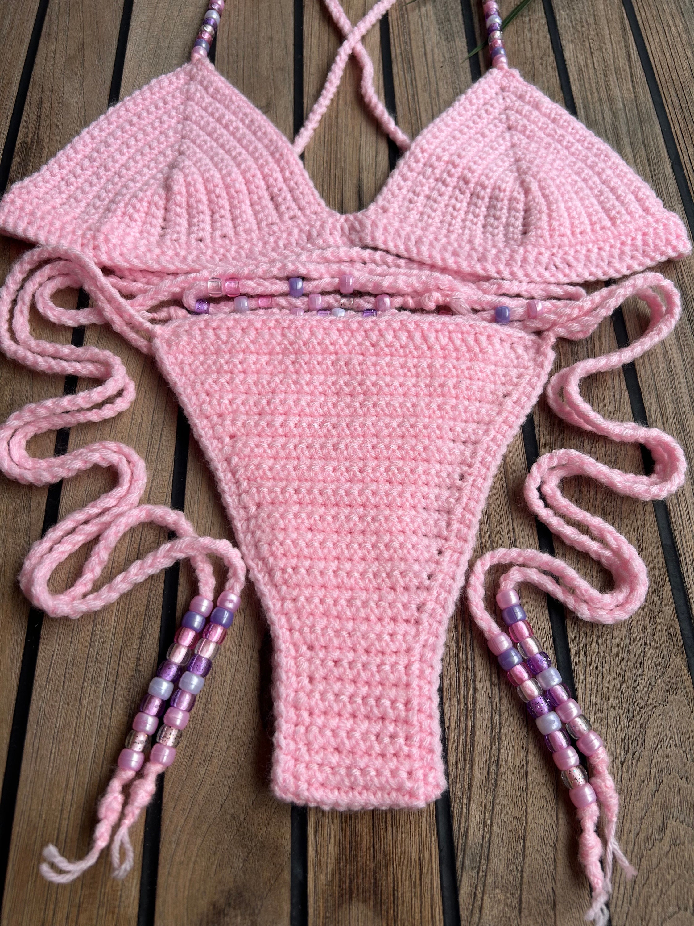 Tag : Solid Triangle Beaded Crochet Bikini Set In Baby Pink Etsy