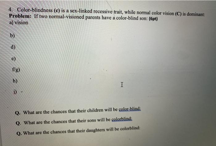 Solved Color Blindness C Is A Sex Linked Recessive Chegg pictures has 500 x 400 · 50 kB · jpeg.