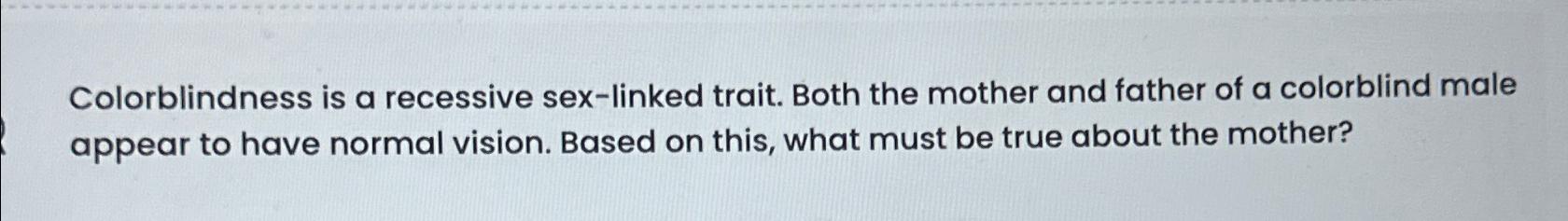 Tag : Solved Colorblindness Is A Recessive Sex Linked Trait Both Chegg