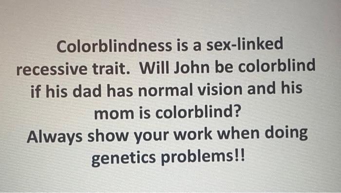 Solved Colorblindness Is A Sex Linked A Recessive Trait Chegg pictures has 500 x 400 · 50 kB · jpeg.
