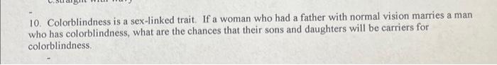 Related pictures for Solved Colorblindness Is A Sex Linked Trait If A Woman Chegg