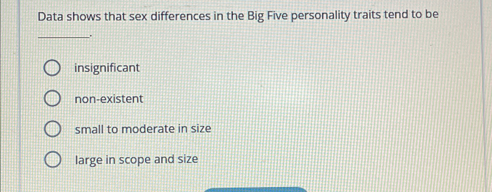 Solved Data Shows That Sex Differences In The Big Five Chegg 56700