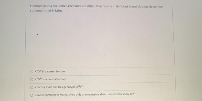 Related pictures for Solved Hemophilia Is A Sex Linked Recessive Condition That Chegg