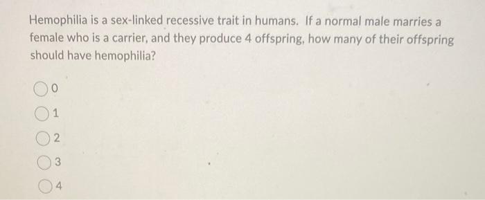 Solved Hemophilia Is A Sex Linked Recessive Trait In Humans Chegg 61230