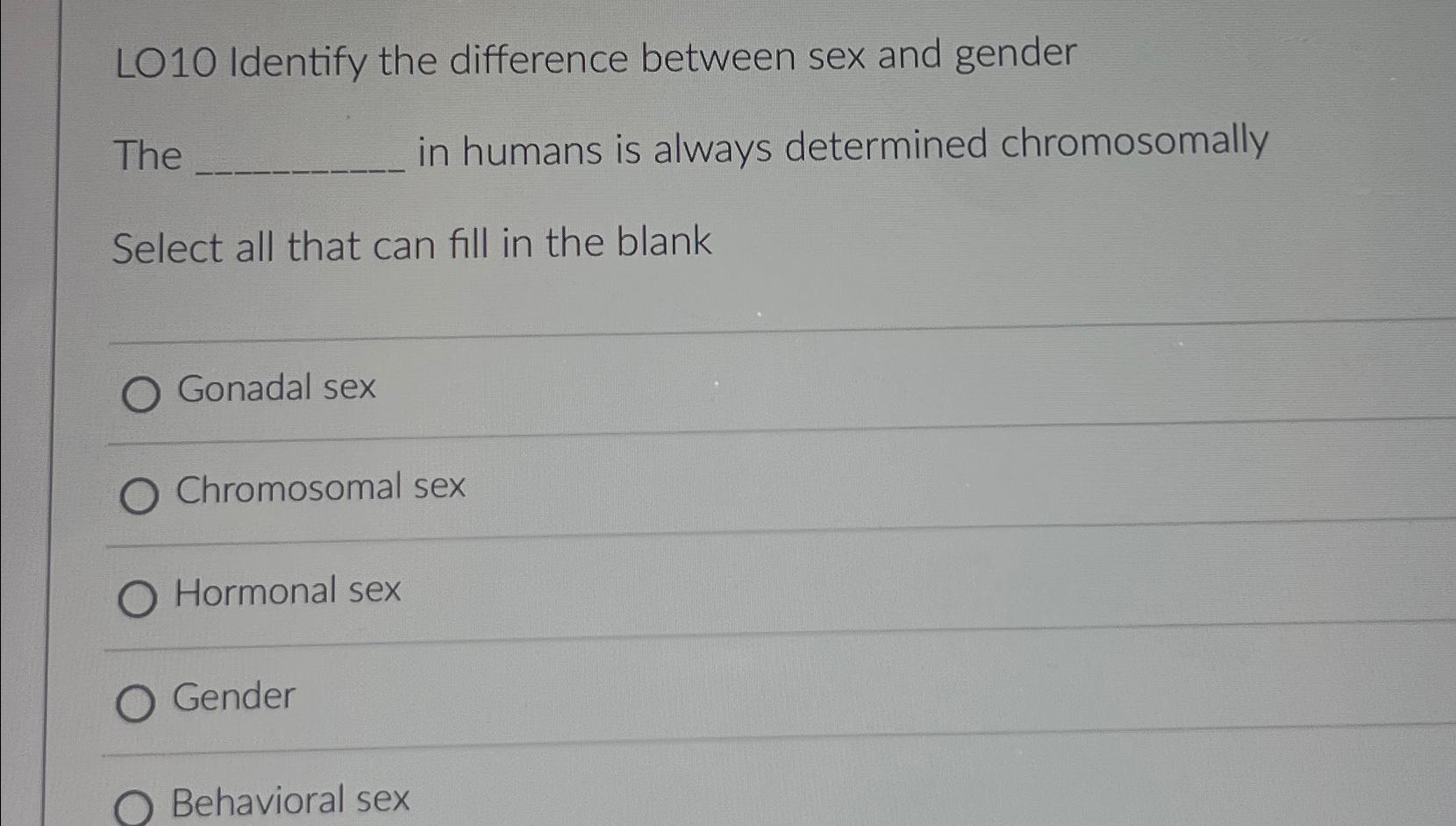 Tag : Solved L Identify The Difference Between Sex And Chegg
