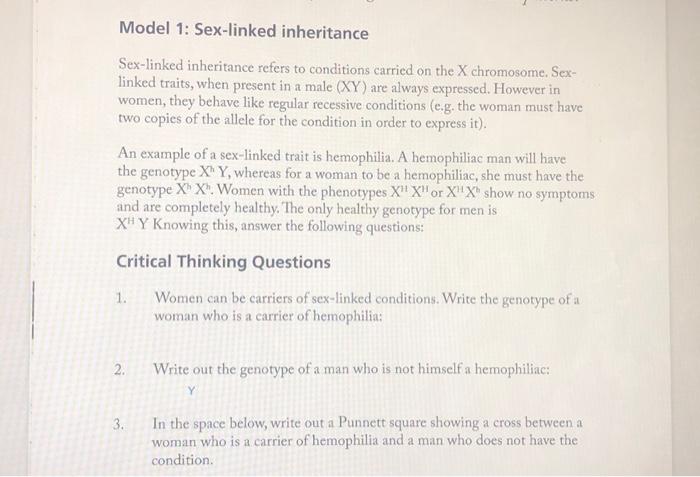 Solved Model Sex Linked Inheritance Sex Linked Chegg is a popular picture for sexy and hot.