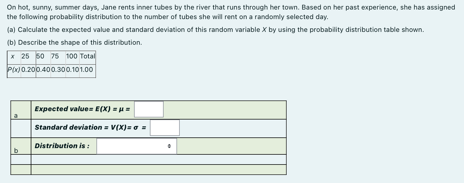 Related pictures for Solved On Hot Sunny Summer Days Jane Rents Inner Tubes By Chegg