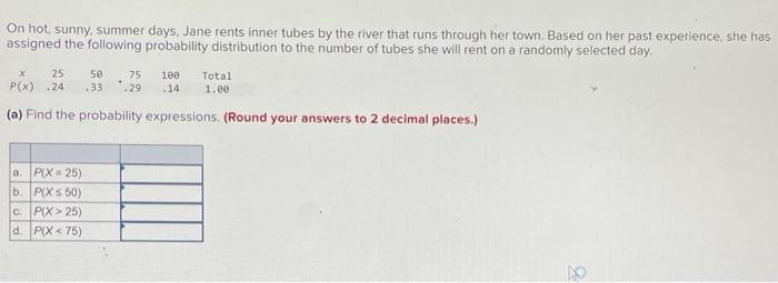 Related pictures for Solved On Hot Sunny Summer Days Jane Rents Inner Tubes By Chegg