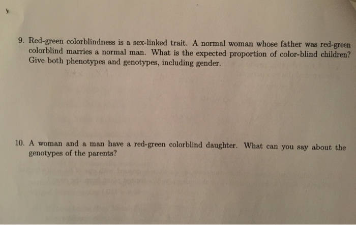 Solved Red Green Colorblindness Is A Sex Linked Trait A Chegg 19154