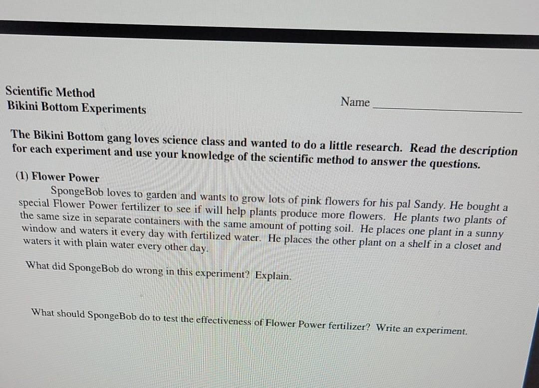 Tag : Solved Scientific Method Bikini Bottom Experiments Name The Chegg