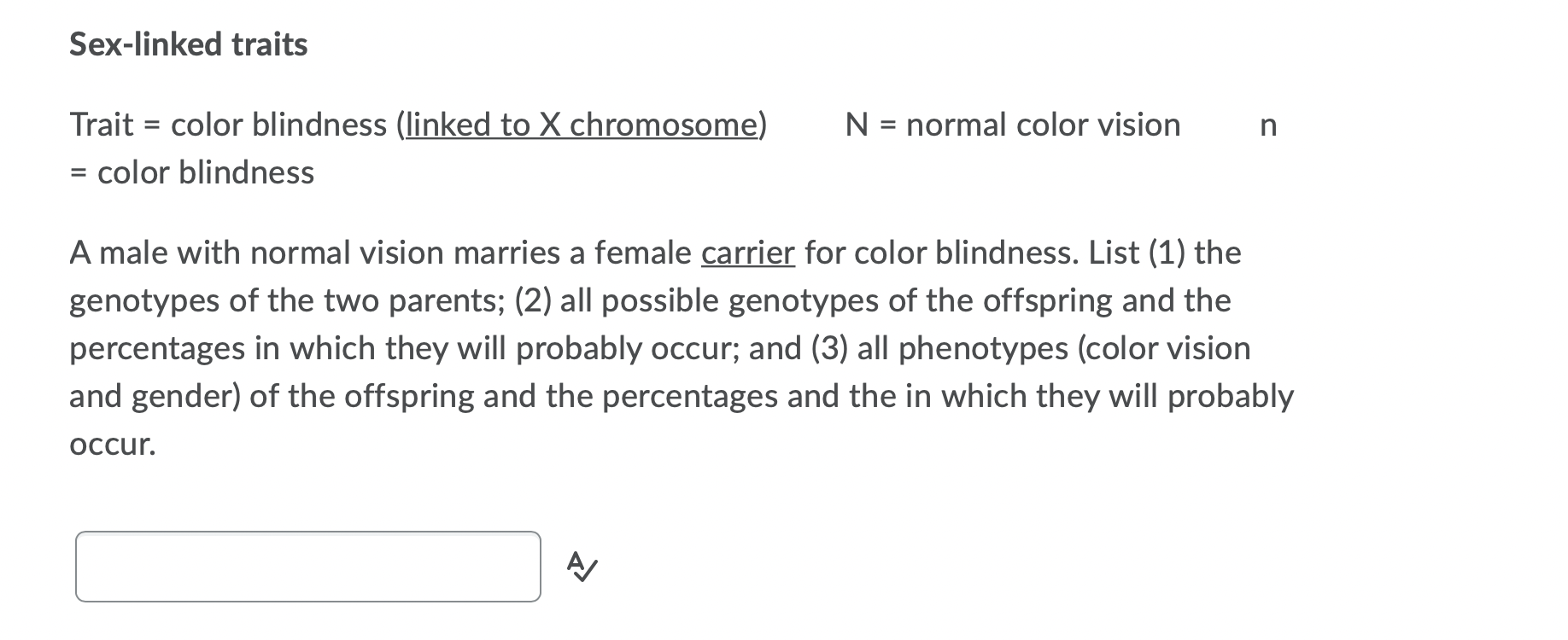 Related pictures for Solved Sex Linked Traits N Normal Color Vision N Trait Chegg