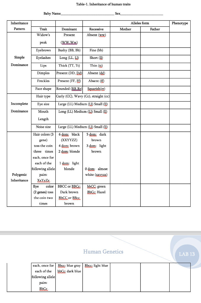 Solved Table Inheritance Of Human Traits Baby Name Sex Chegg pictures has 500 x 400 · 50 kB · jpeg.