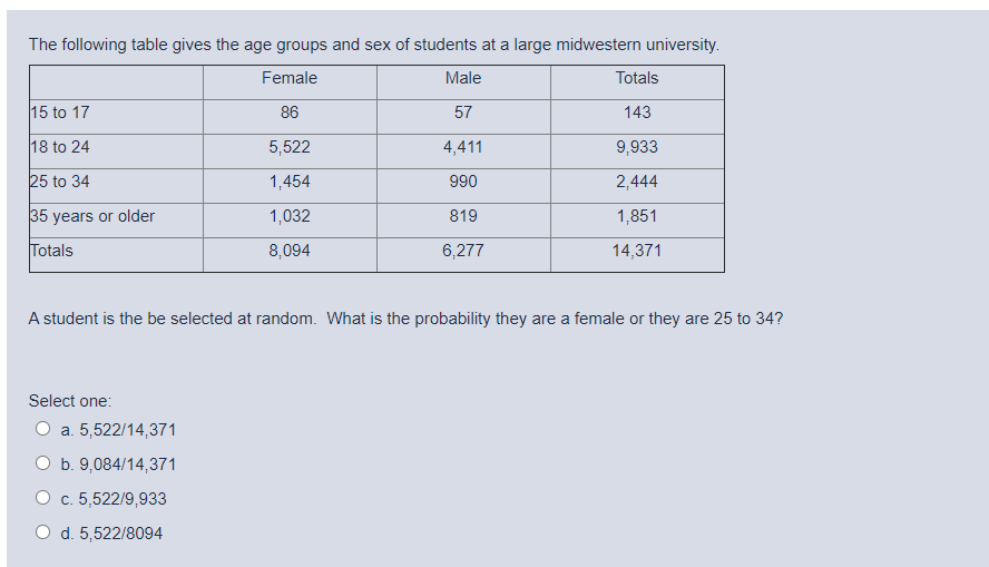Tag : Solved The Following Table Gives The Age Groups And Sex Of Chegg