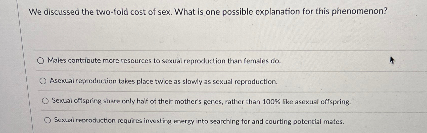 Solved We Discussed The Two Fold Cost Of Sex What Is One Chegg pictures has 500 x 400 · 50 kB · jpeg.