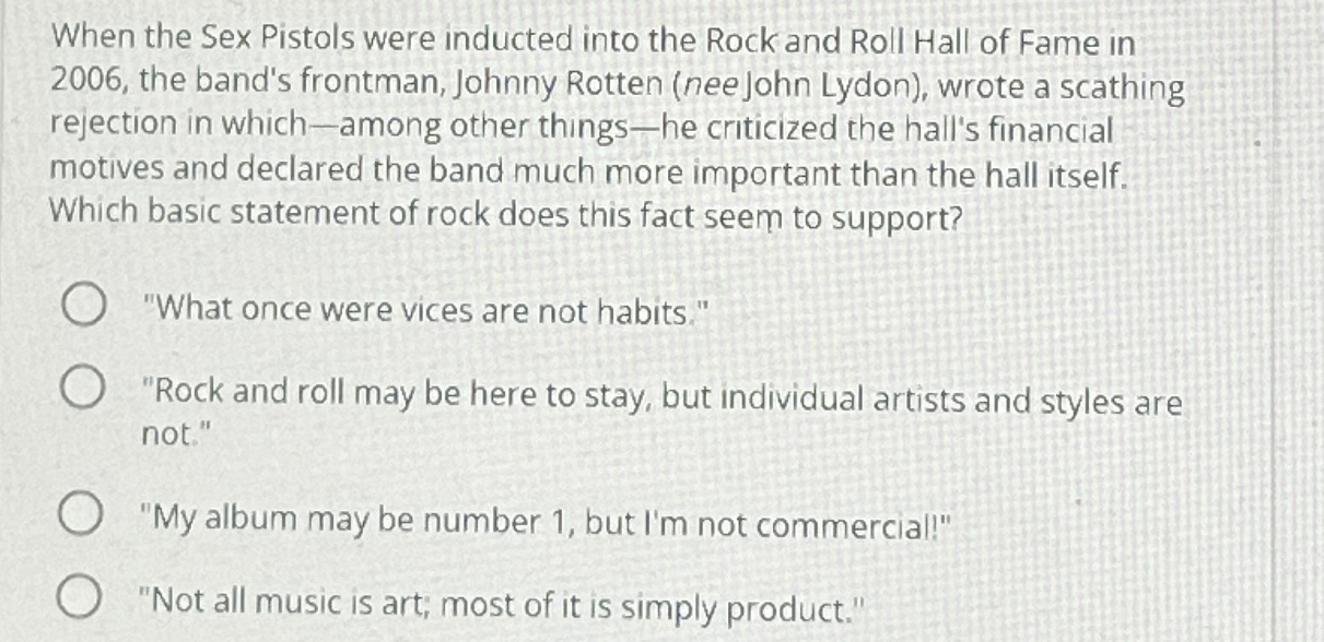 Solved When The Sex Pistols Were Inducted Into The Rock And Chegg pictures has 500 x 400 · 50 kB · jpeg.