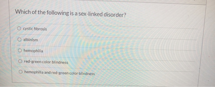 Solved Which Of The Following Is A Sex Linked Disorder O Chegg pictures has 500 x 400 · 50 kB · jpeg.