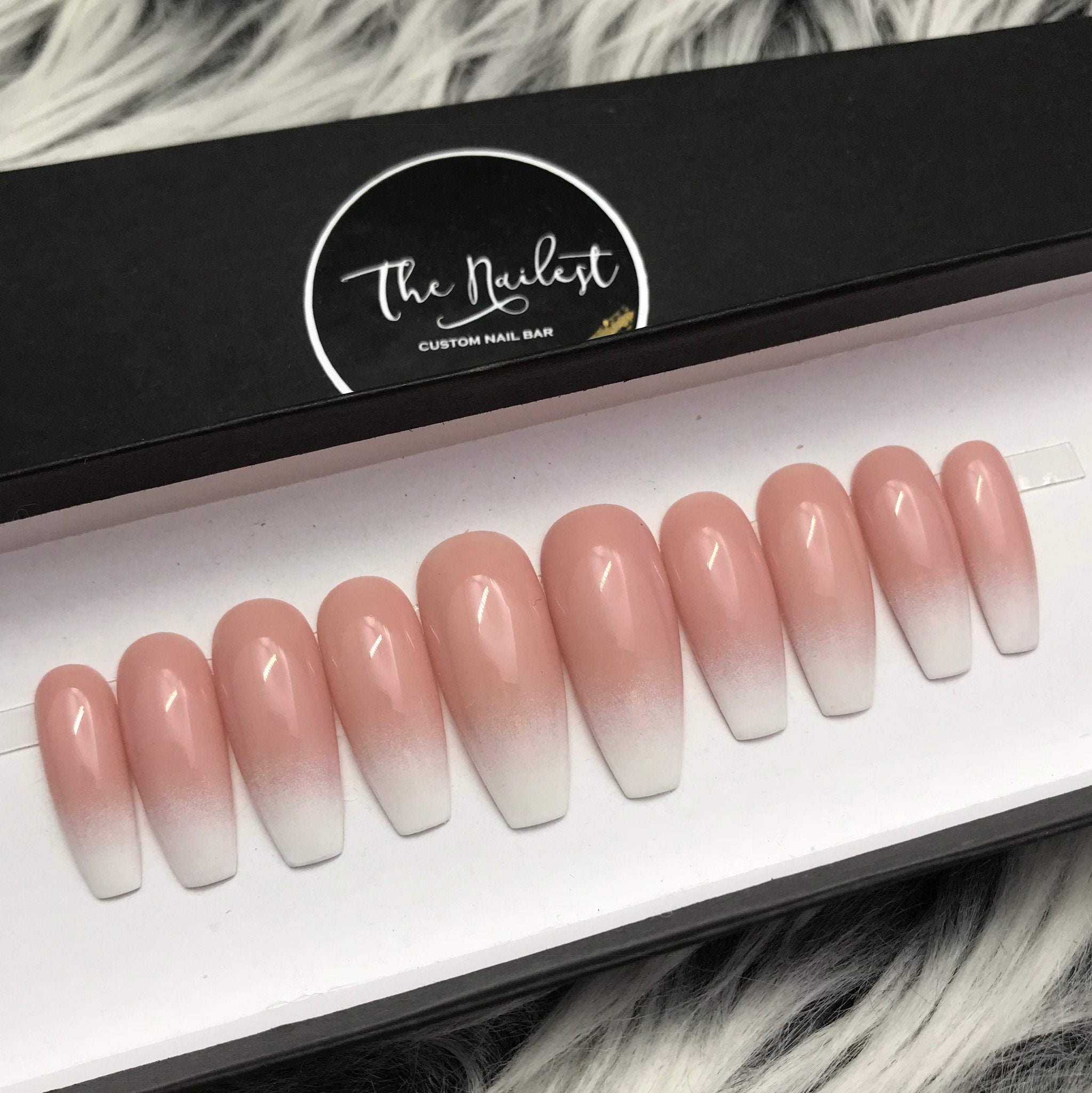 Soph Pink And White Ombre Nude Blend Baby Boomer Press On Nails Any Shape Fake Nails is a popular picture for sexy and hot.