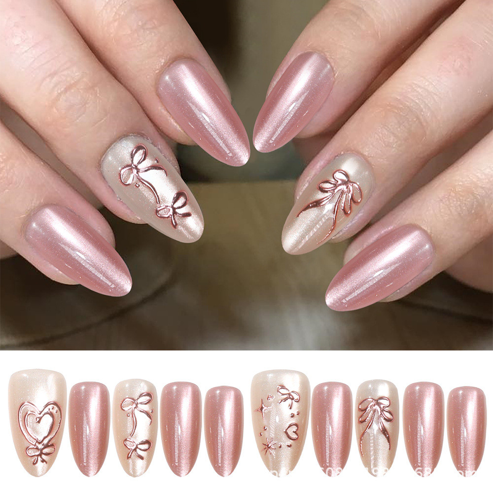 Sophiaura Fake Nails Nude Cat Eye Design Short Oval Shape Shiny Press On Nails With Glue 234432