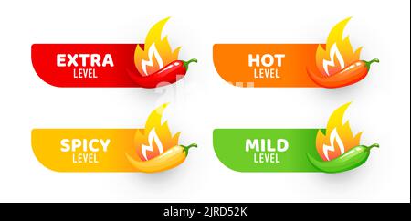 Spicy Level Sticky Labels Vector Savory Food Rating Scale Emblems Hot Chili Pepper Cayenne Or is a popular picture for sexy and hot.