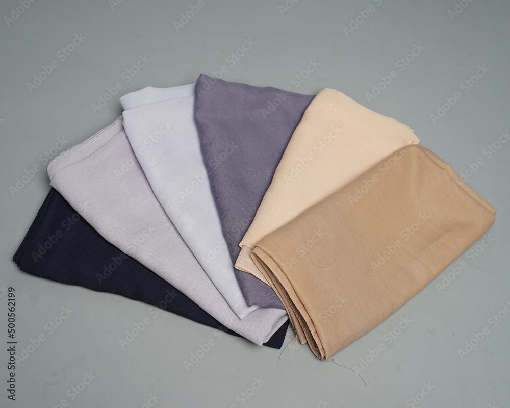Tag : Stacks Of Nude Colored Veils Neatly Arranged On A Gray Background Thin Fabric Blend Of Gray
