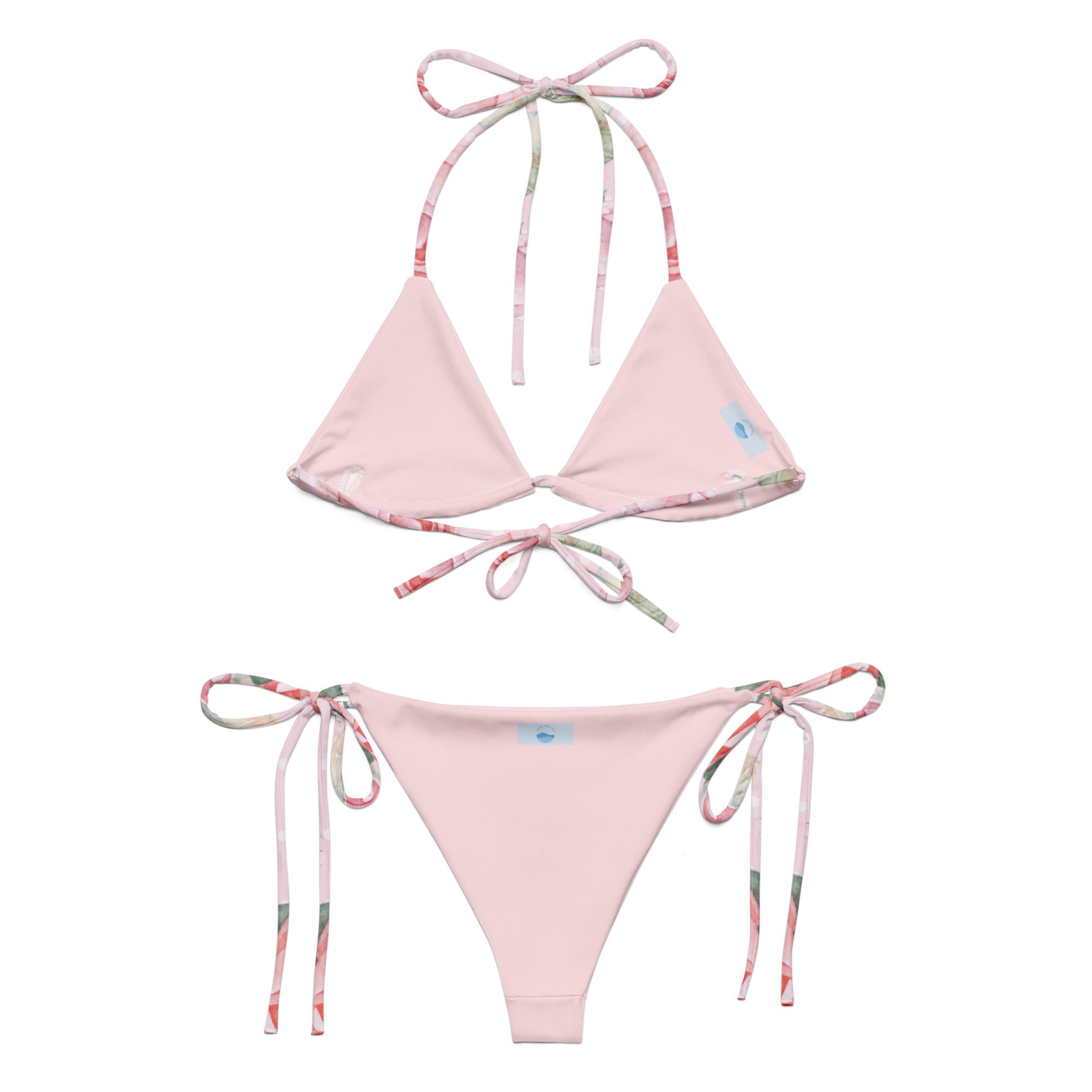 Tag : String Bikini Pink Roses Two Piece Swimsuit Floral Bikini Beach Vacation Bikini Resort Wear