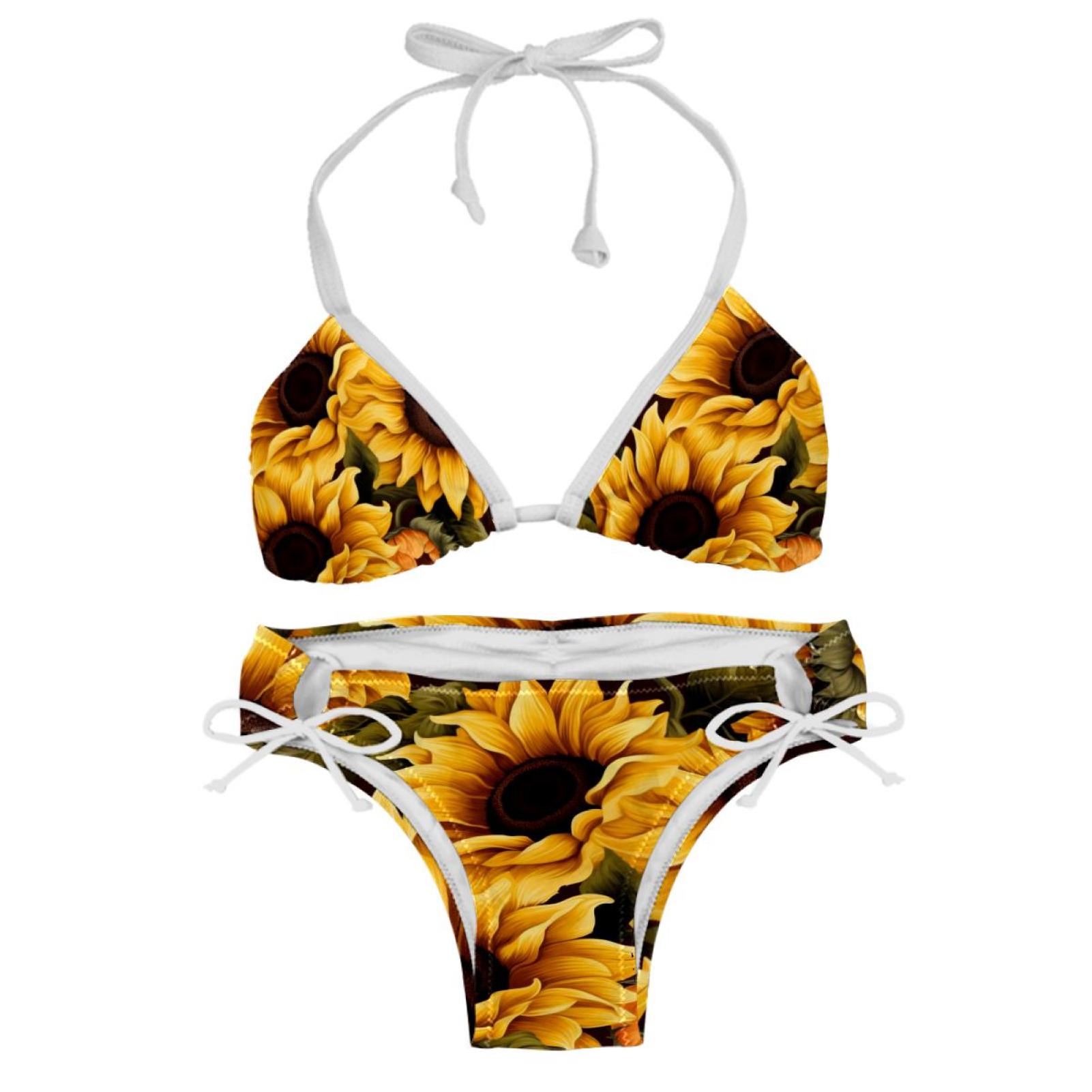 Sunflower Seamless Printing Detachable Sponge Adjustable Strap Bikini Set Two Pack Swimsuits is a popular picture for sexy and hot.