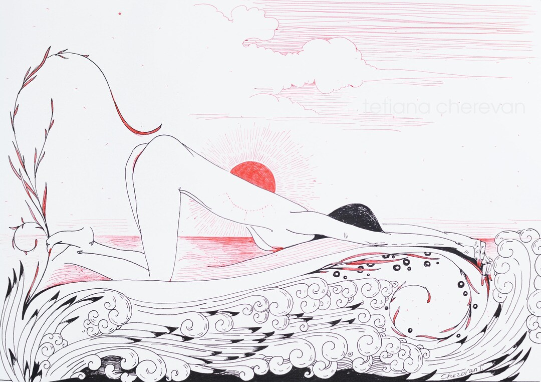 Tag : Sunrise Naked Art Nouveau Graphic Artworks X Cm Sensuality Woman Original Artwork On Paper