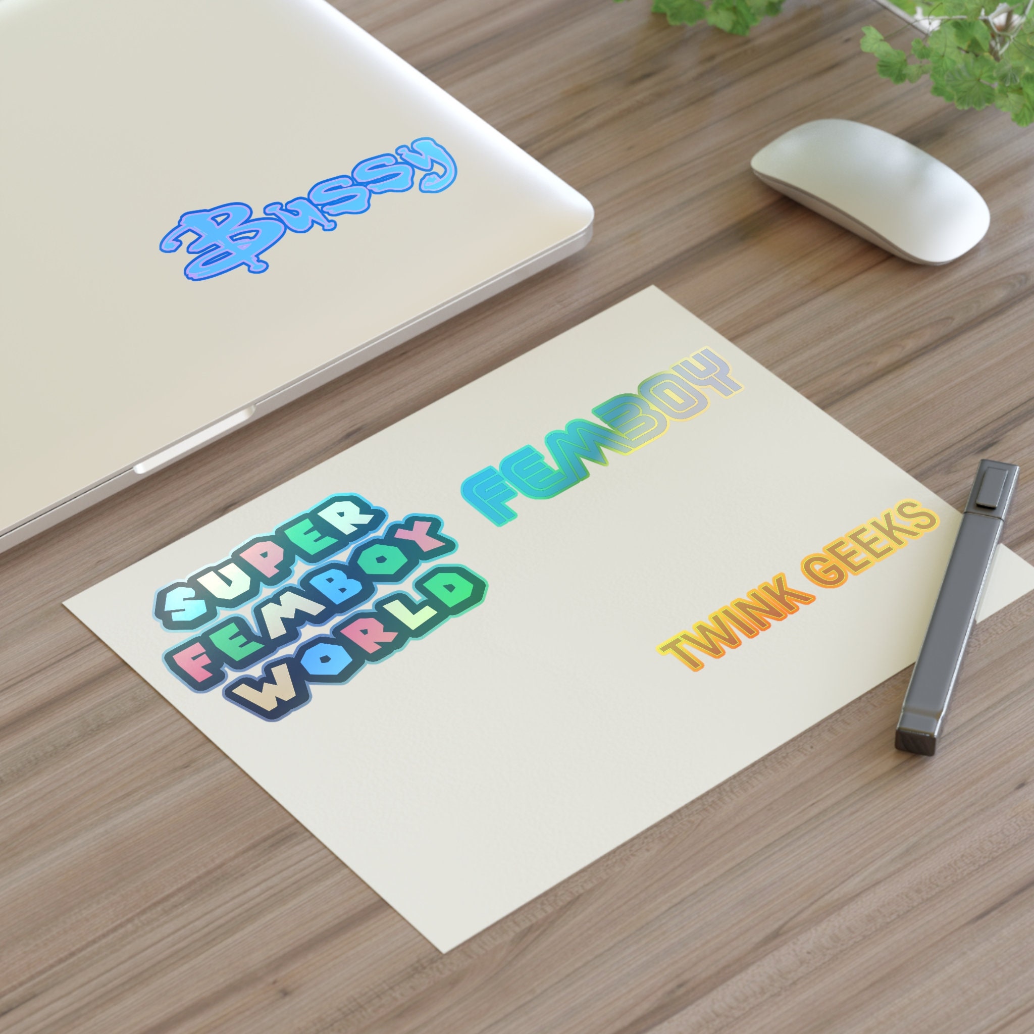Tag : Super Gay Femboy Twink Geek Sticker Sheets Holographic Stickers Transparent White
