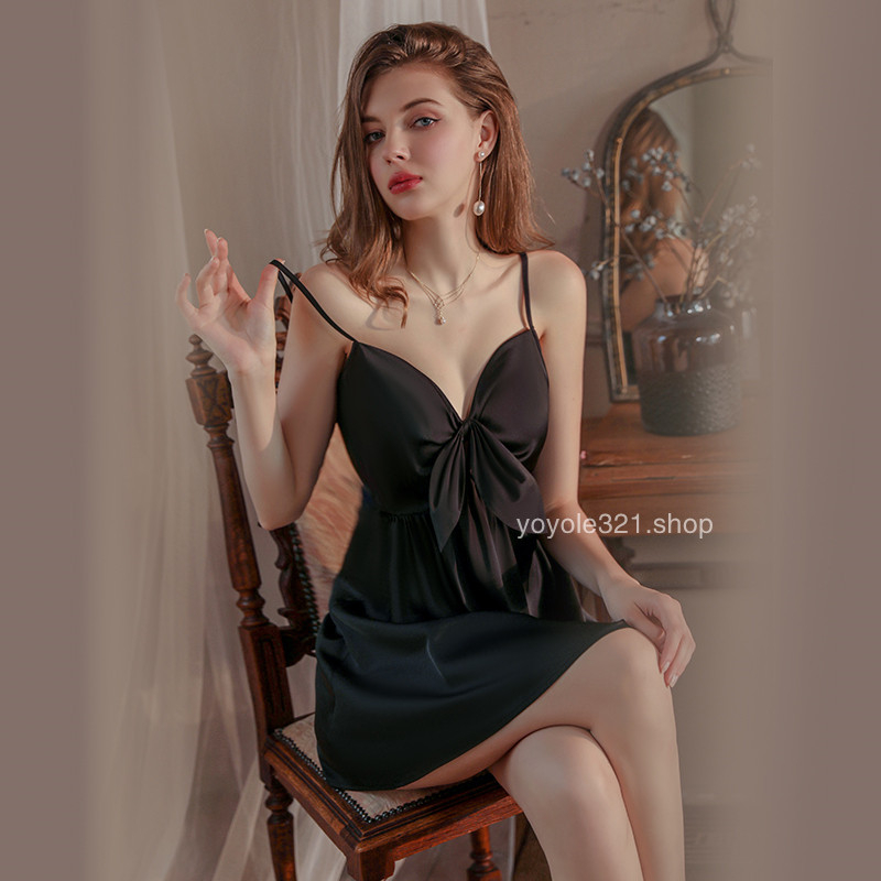 Sweet Alluring Sexy Sleepwear Women Silk Pyjamas Satin Smooth Pajama Lingerie Plain Color is a popular picture for sexy and hot.
