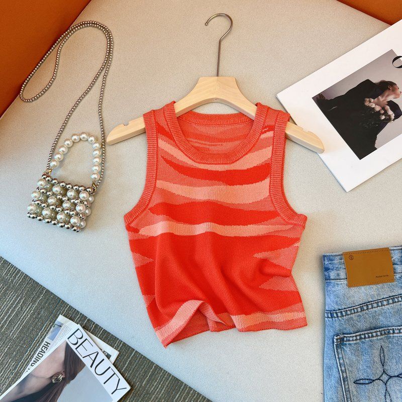 Tag : Sweet Cool Hot Girl Knitted Striped Small Vest Sling Women S Inner French Style Chic Short