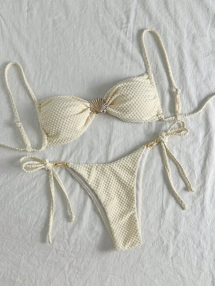 Tag : Swim Chiccia Conjunto De Bikini Con Tirantes Finos De Unicolor Con Textura Sexy Con
