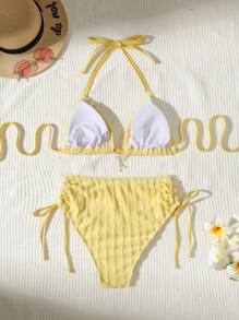 Tag : Swim Mod Plus Size Women Pcs Bikini Swimwear Set Adorable Yellow Textured Fabric Halter Halter