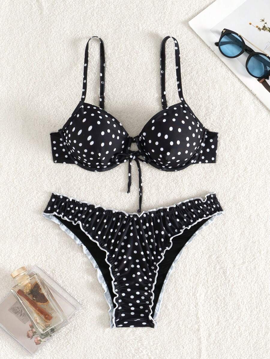 Swim Mod Schwarz Wei Gepunkteter S Er Urlaubs Neckholder Bikini Badeanzug Mit Schleife Und is a popular picture for sexy and hot.