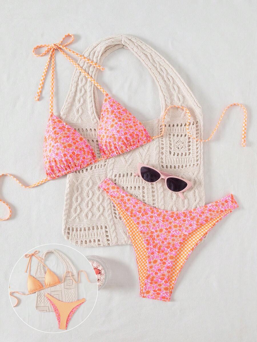 Swim Mod Springbreak Women S Cute Sexy Printed Reversible Triangle Bikini Swimwear Set Side is a popular picture for sexy and hot.