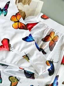 Related pictures for Swim Mod Summer Beach Butterfly Print Bikini Set Triangle Bra Hipster Bottom Lettuce Trim