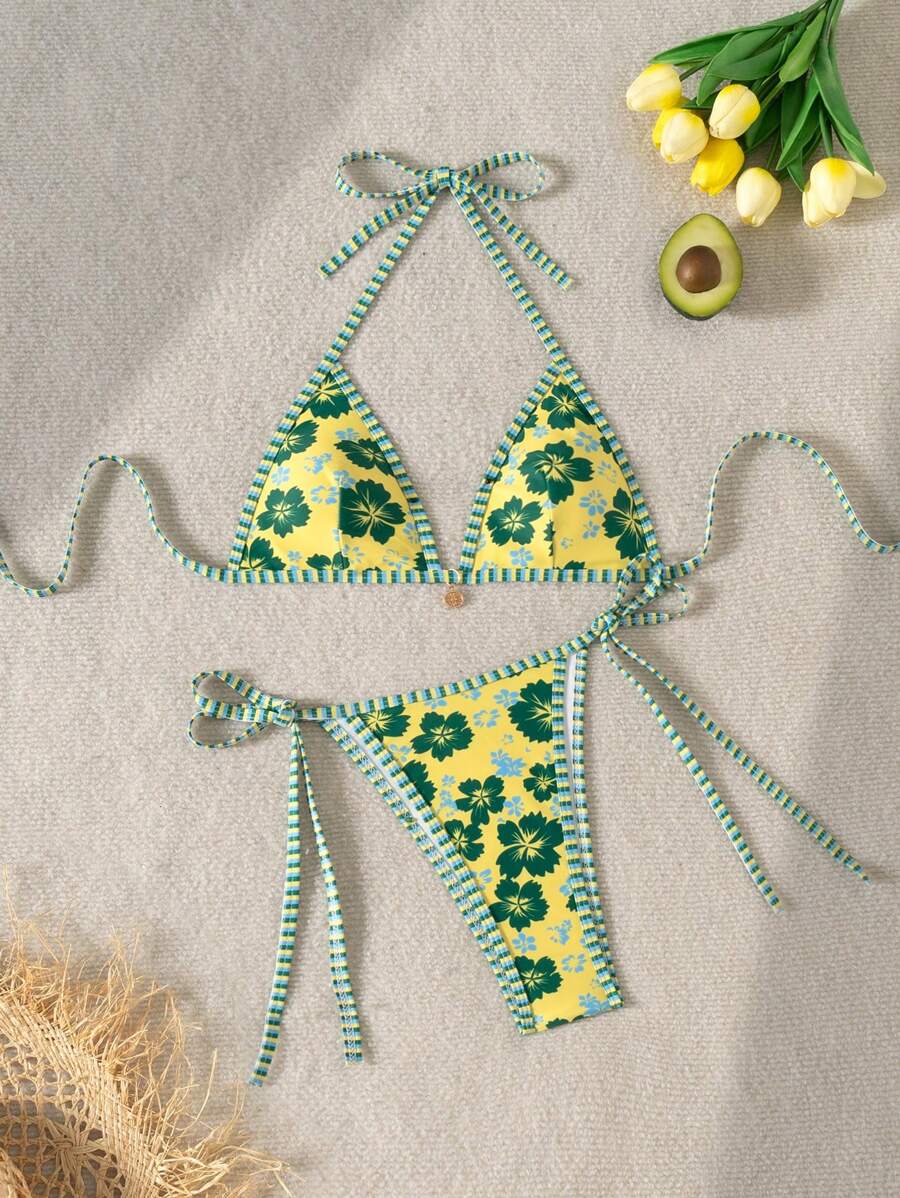 Swim Mod Women S New Floral Print Spaghetti Strap Backless Top And Drawstring Side Bikini Set is a popular picture for sexy and hot.