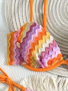 Swim Vcay Pcs Women S Jacquard Knit Push Up Camisole Top And Side Tie Triangle Bikini Bottom is a popular picture for sexy and hot.