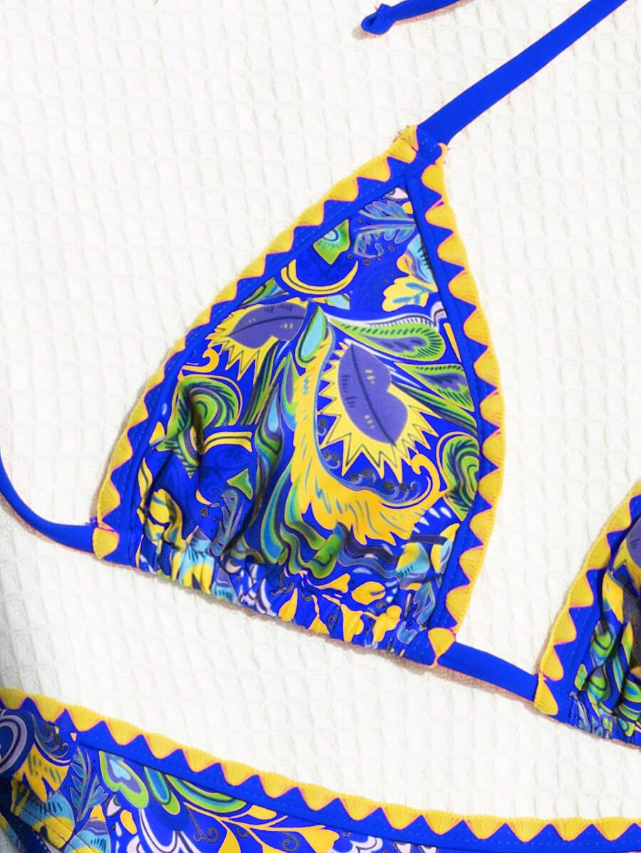 Tag : Swim Vcay Summer Halter Allover Print Halter Neck Bikini Top And Side Tie Bikini Bottom Set