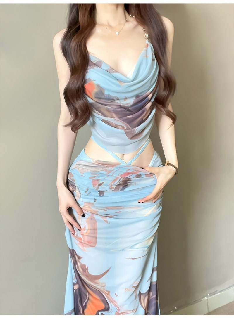 Related pictures for Swimsuit Female Sexy Long Skirt Bikini Three Piece Korean Style Fashion Beach Vacation Travel