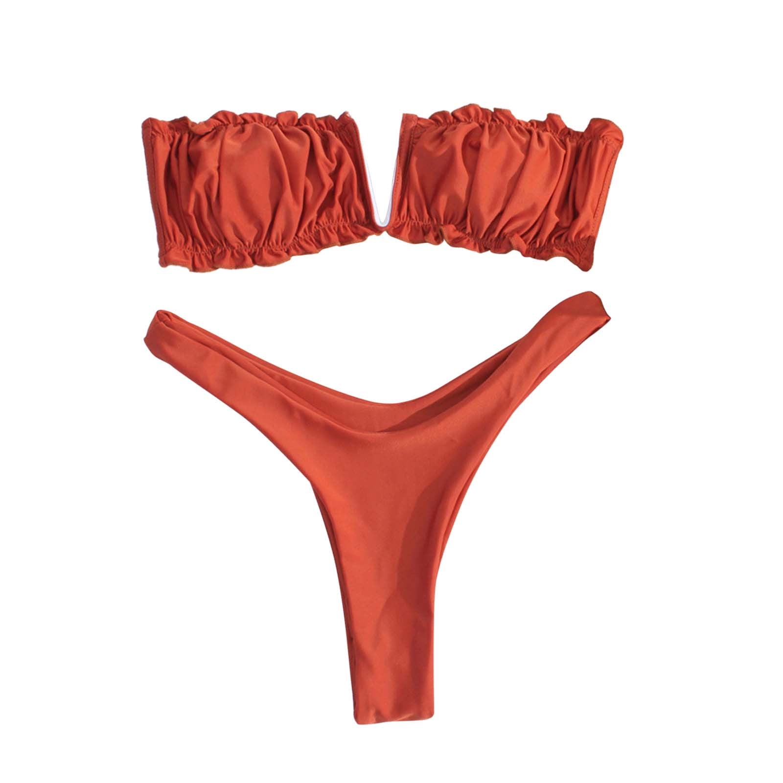Swimsuits For Women S Floral Print Bandeau Thong Bikini Set High Cut Strapless V Neck Swimsuit