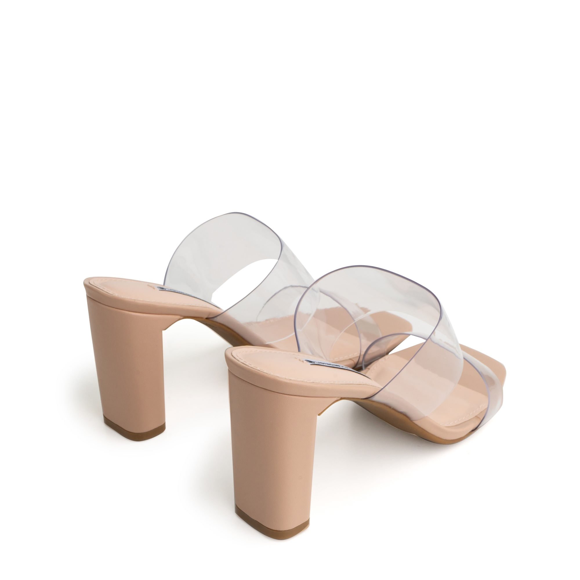 Tag : Tamanco Nude Amendoa Salto Bloco Tiras Vinil Shine Bege