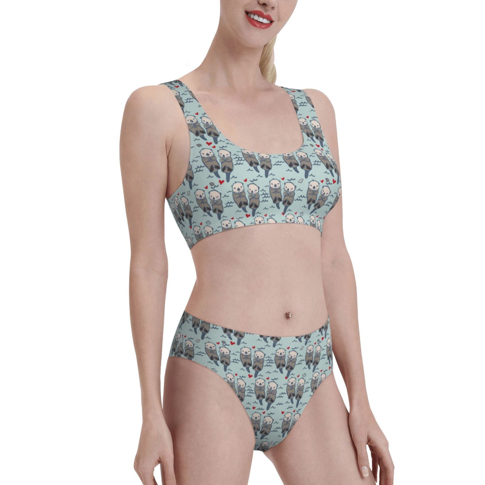 Tebeau Sea Otter Print Bikini Set For Women Two Piece Swimsuit Bandeau Top Back Tie Mid Waisted pictures has 500 x 400 · 50 kB · jpeg.