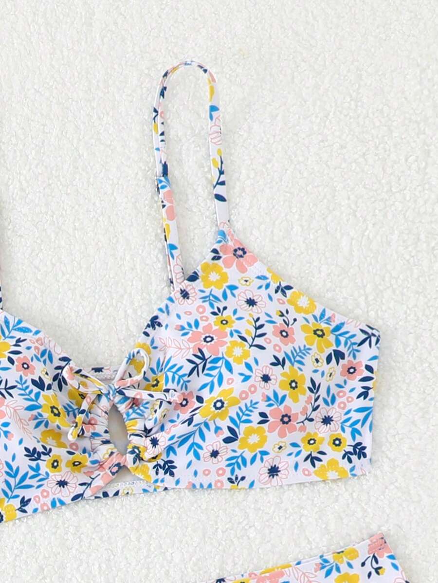 Tag : Teen Girl Summer Beach Ditsy Floral Bikini With Hollow Cover Up Pants Bikini Set Shein South