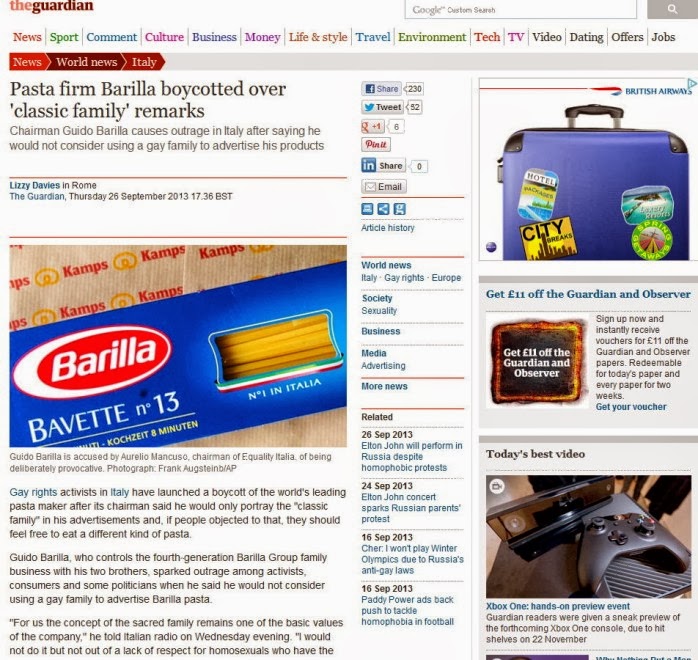 Tersite Arroganze Barilla Contro I Gay I Gay Contro Barilla